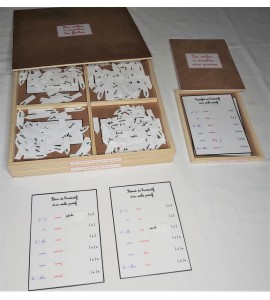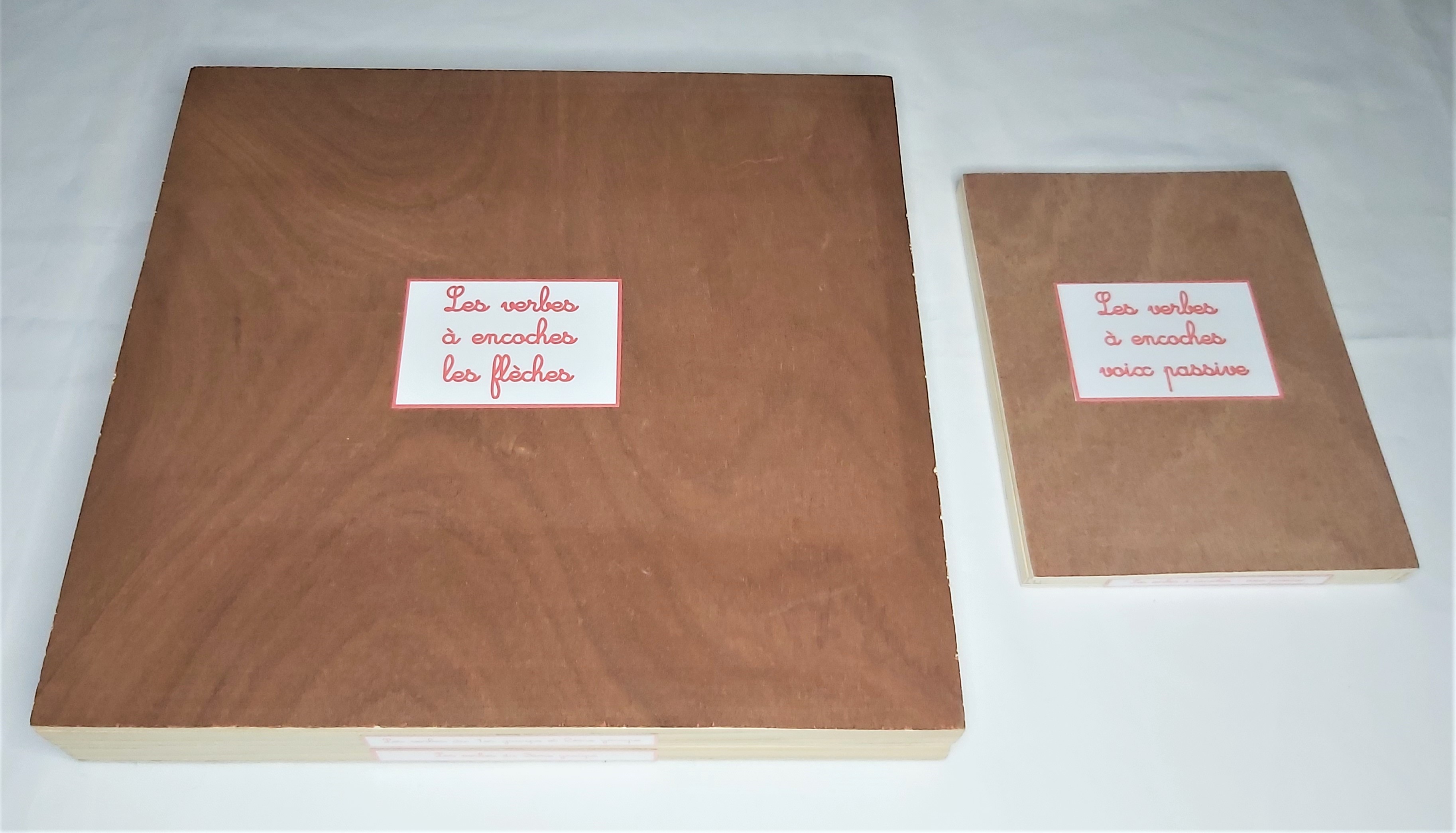 Ce matériel comprend des fiches à encoches des verbes à la voix passive ainsi que des flèches que l'enfant doit glisser dans l'encoche de sa fiche.