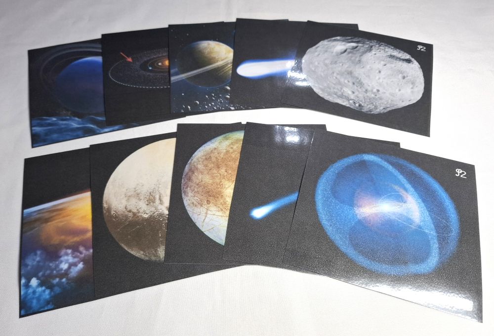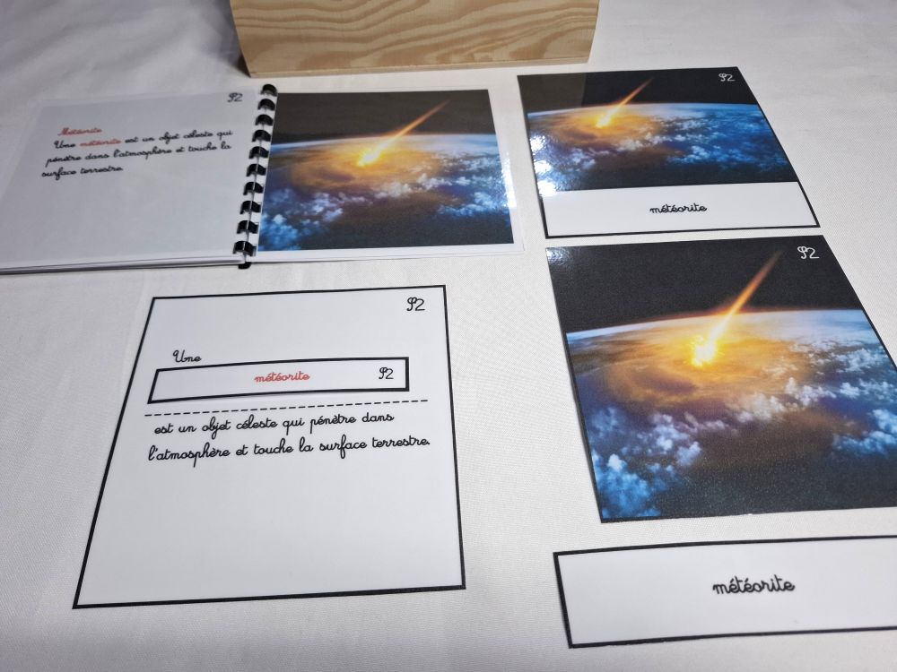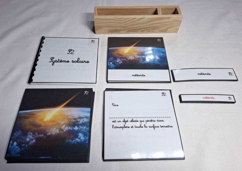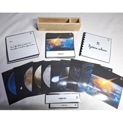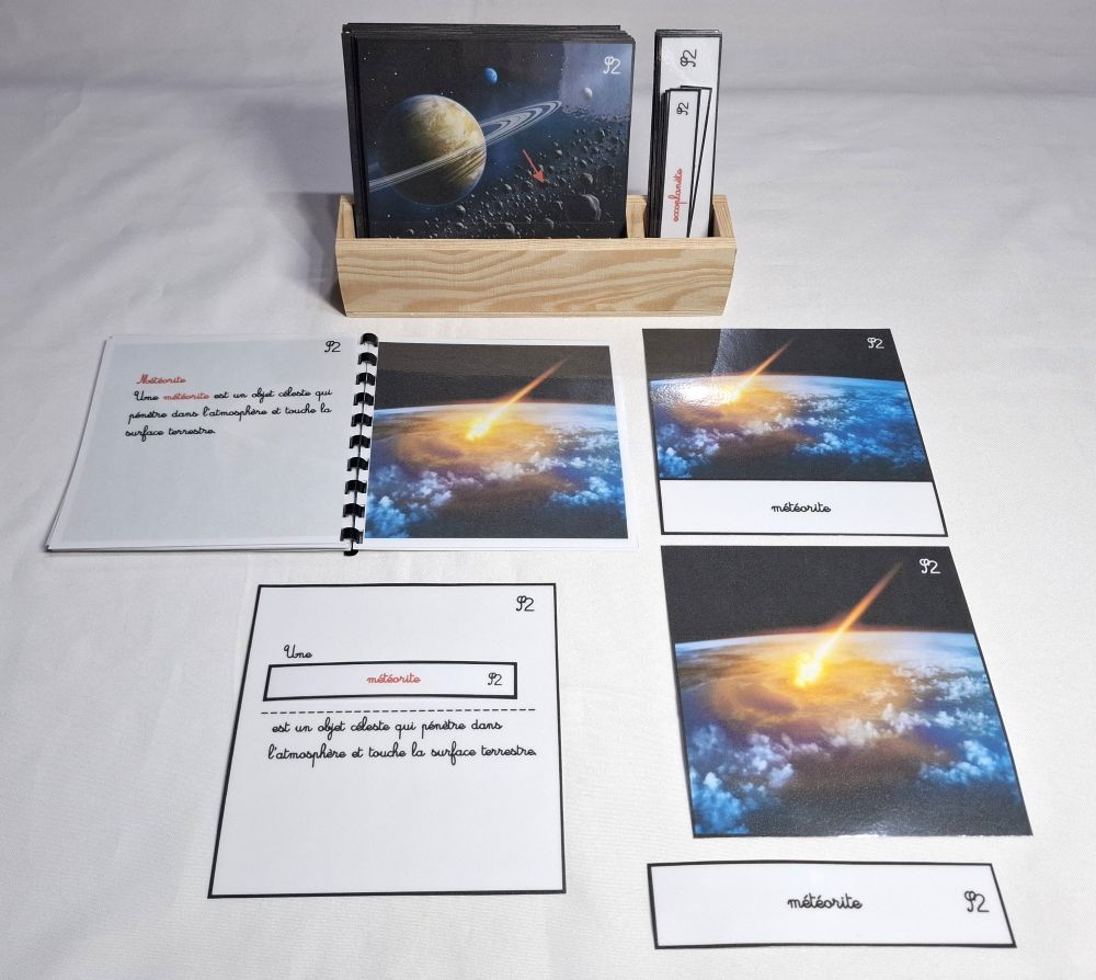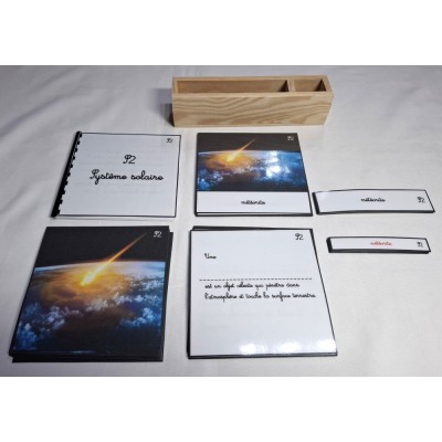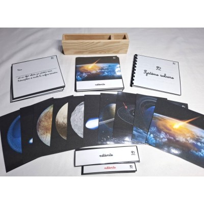Ce matériel comprend 11 cartes de nomenclature du système solaire ( astéroïde, comète, planète naine, satellite naturel... )