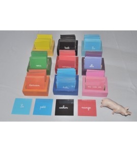 Chaque boite contient deux compartiments dont un avec des étiquettes vierges où l'enfant peut écrire ses propres mots.