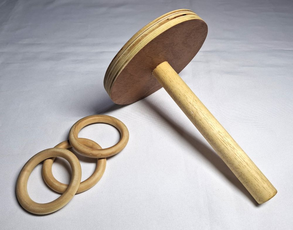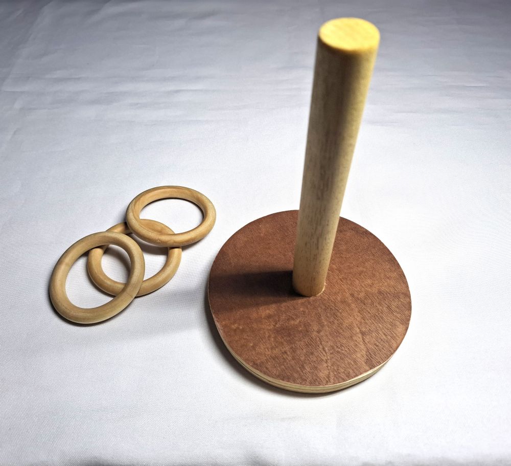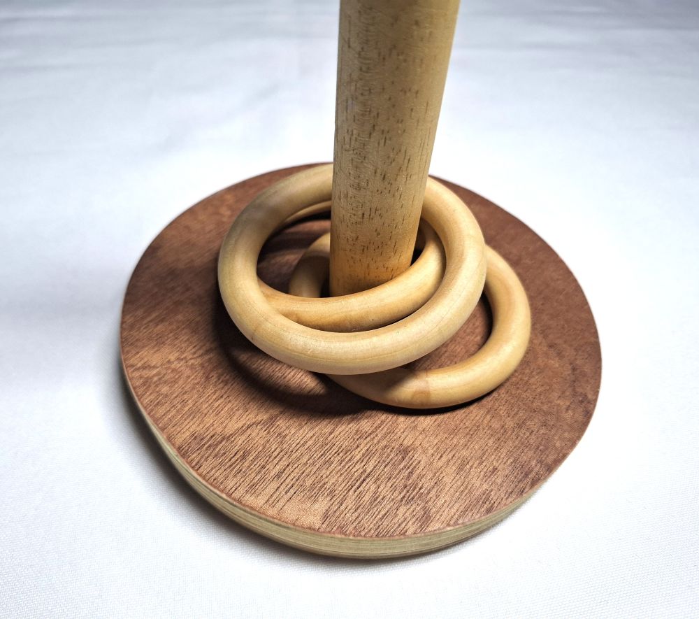 Support en bois vertical avec 3 anneaux. Diamètre de 14 cm