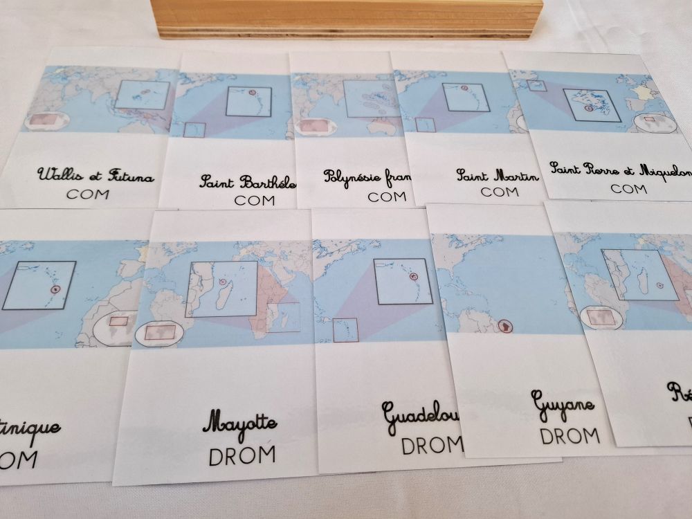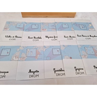 10 cartes de nomenclatures sur le thème des DROM COM - 5 sur les DROM ( départements et régions outre mer ) et 5 sur les COM ( collectivités d'outre mer )