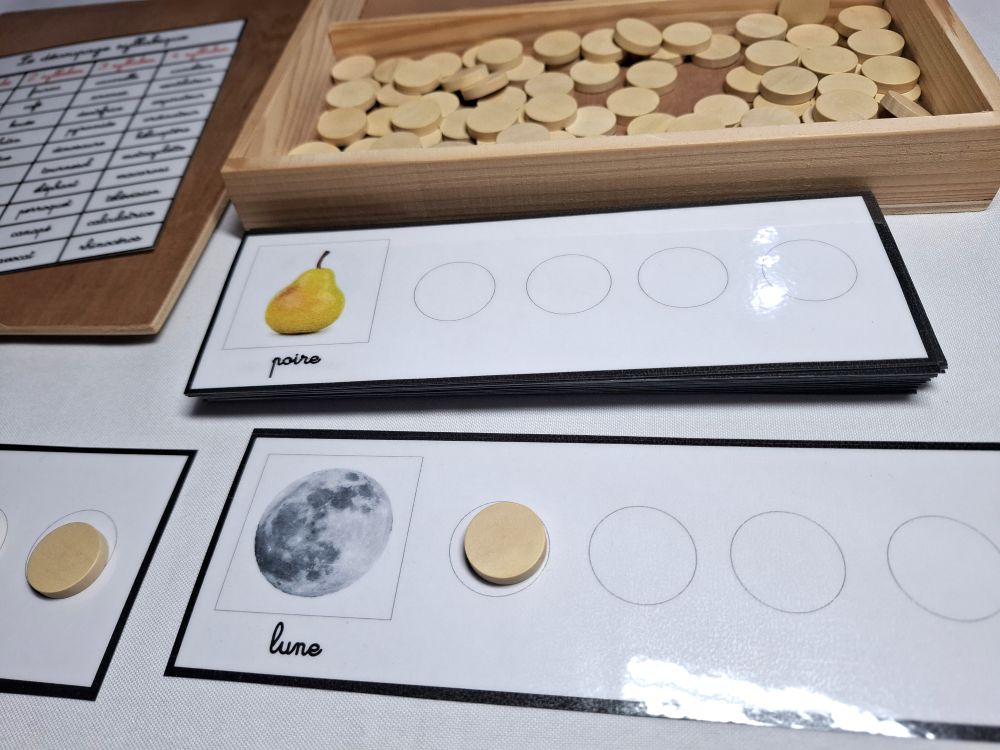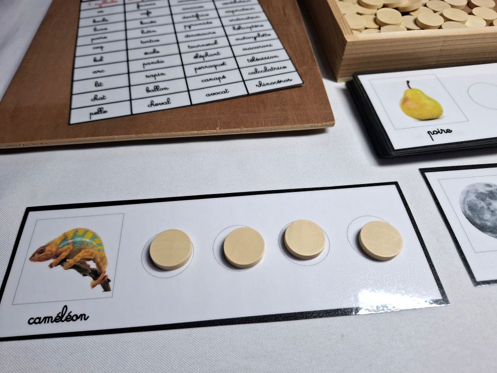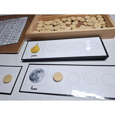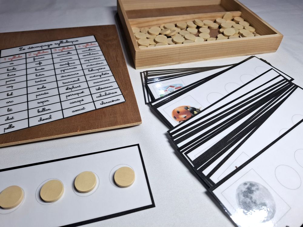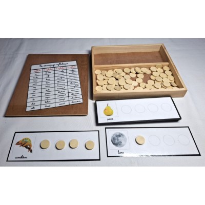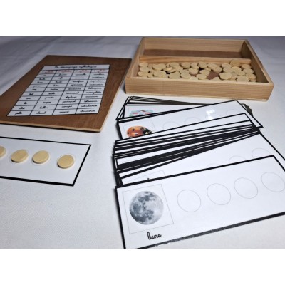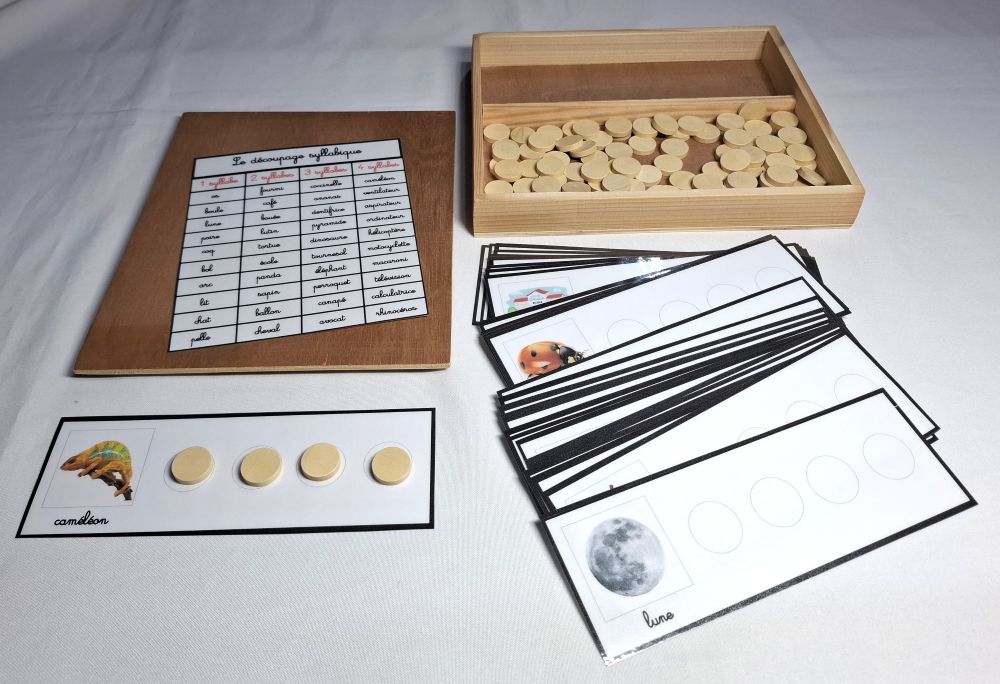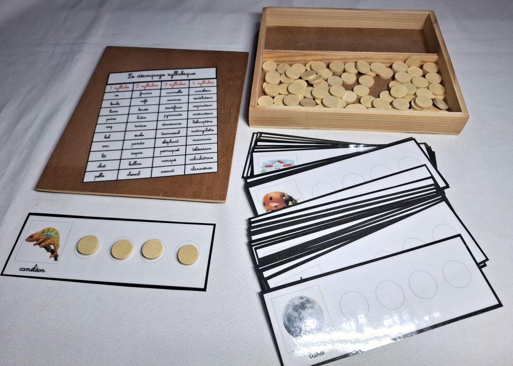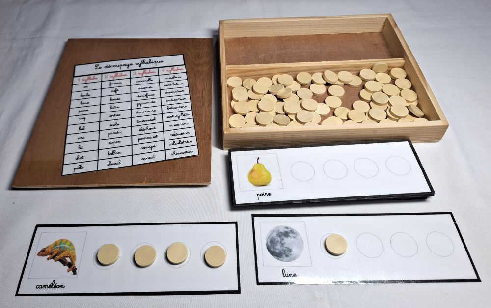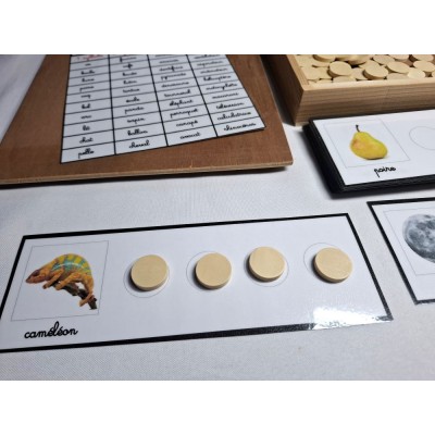 Ce matériel permet à l'enfant de travailler sur le découpage en syllabes des mots.