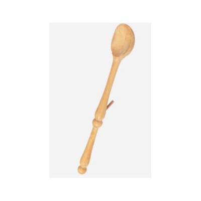 Cuillère à confiture en buis français pour se servir jusqu’au fond du pot sans salir le manche qui peut reposer sur le bord du pot grâce à une petite tigette en bois.