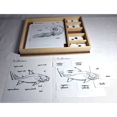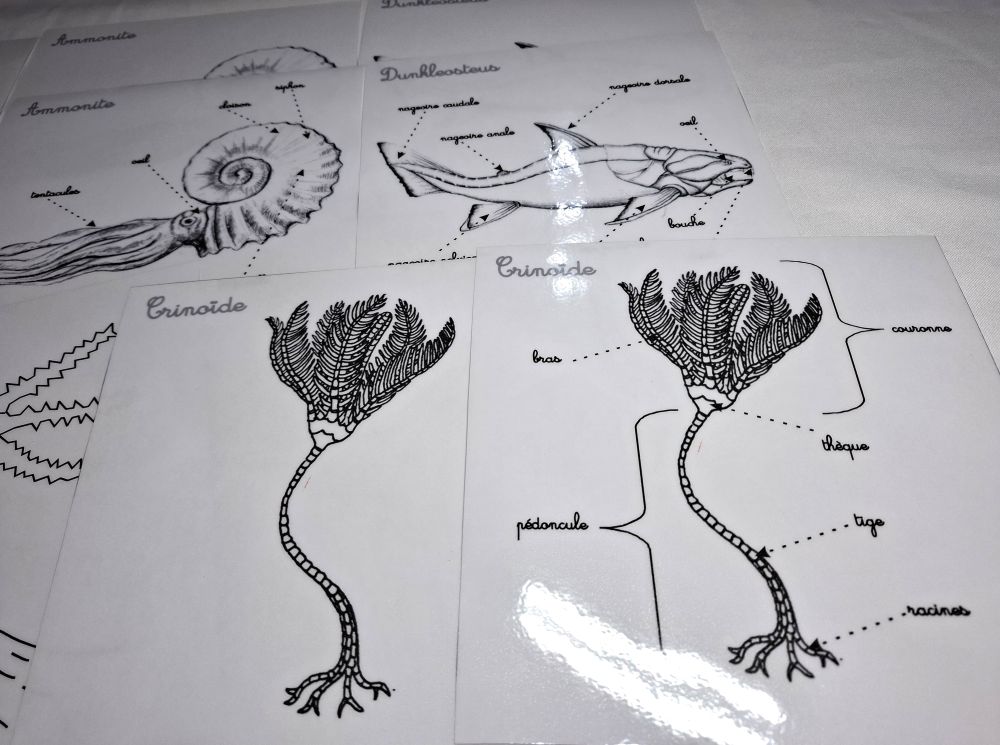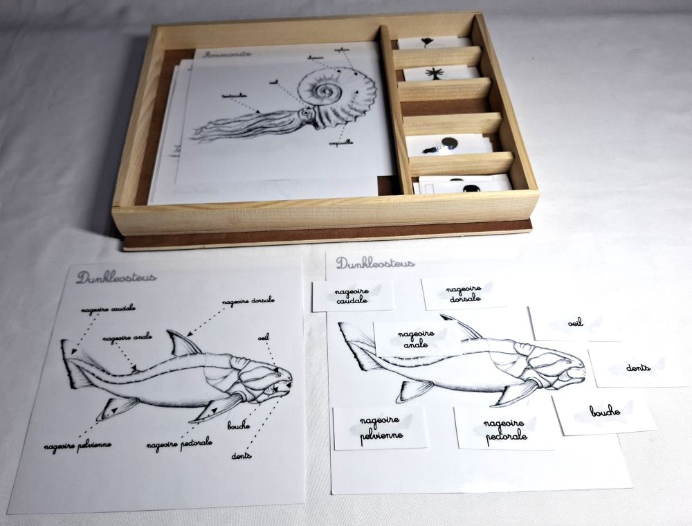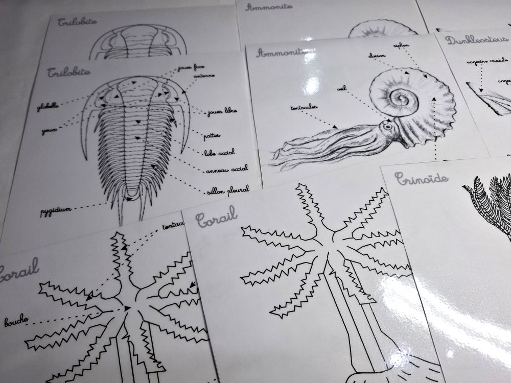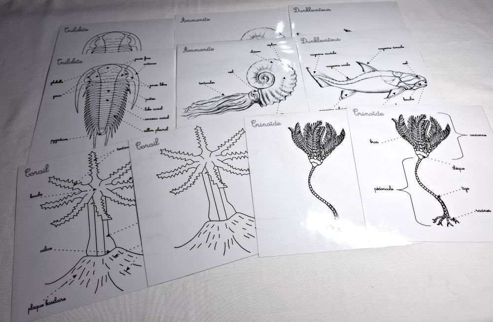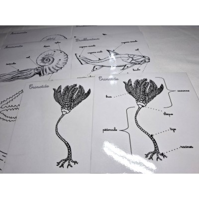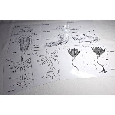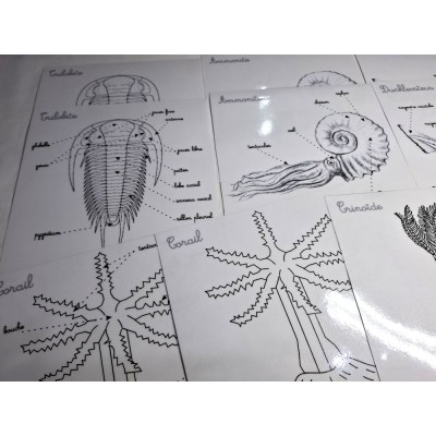 Ce coffret comprend : le Dunkleosteus, l'Ammonite, le Corail, la Crinoïde et la Trilobite.