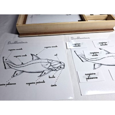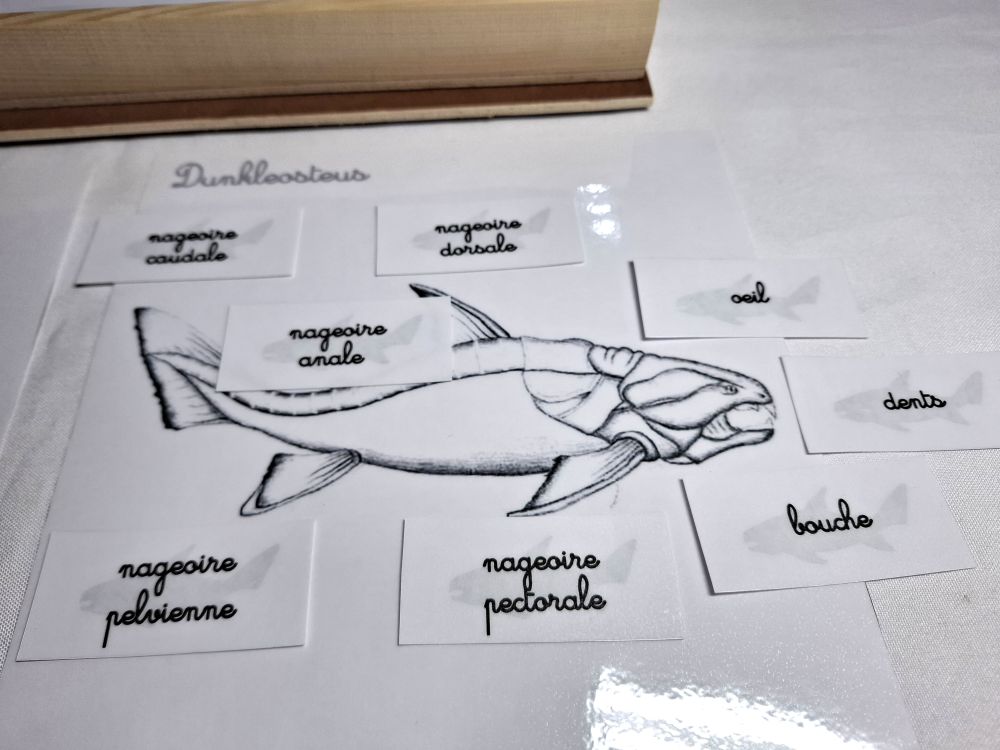 Coffret zoologie 2éme récit, l'enfant doit lire le mot et le placer sur la plaque vierge.